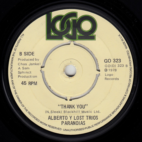 プロデュースを担当しつつ、鍵盤でCHAZ JANKELも在籍する特殊ファン・パンク・バンド。代表作であるキラー・ファン・パンク「THANK YOU」、グラム・ロックンロールな佇まいの「HEADS DOWN, NO NONSENSE, MINDLESS BOOGIE」をカップリングした7インチ。
