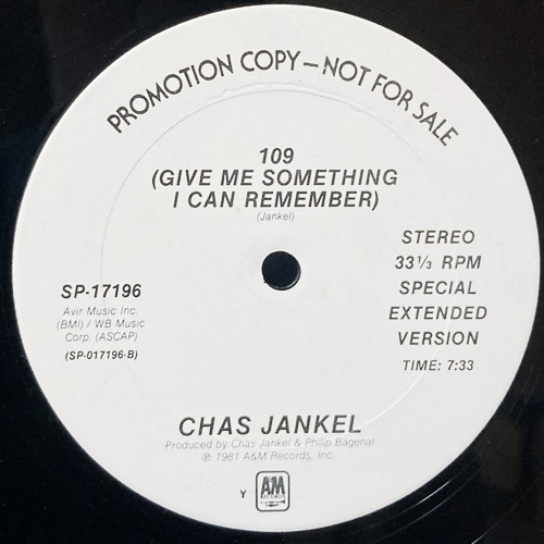 PARADISE GARAGE好き直撃のエレクトリック・ニューウェイヴ・ディスコ!長尺仕様の12インチ・ヴァージョン「109 (GIVE ME SOMETHING I CAN REMEMBER) (SPECIAL EXTENDED VERSION)」をカップリング!US PROMO 12インチ!