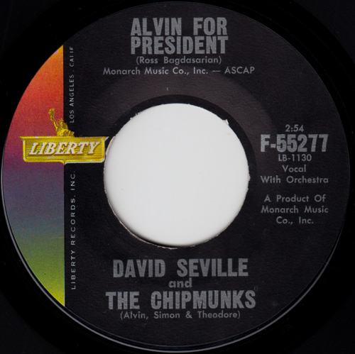 3RDアルバム『AROUND THE WORLD WITH THE CHIPMUNKS』に収録されている「I WISH I COULD SPEAK FRENCH」を下敷きに、チップマンクスのリーダーであるアルヴィンが、アメリカ大統領選挙に出馬するという架空のストーリーをテーマにしたコミカルな風刺ソング(同年には本物の大統領選挙(ジョン・F・ケネディ対リチャード・ニクソン)が行われていました)。その年のグラミー賞でベスト・レコーディング・エンジニア賞にノミネート。「SACK TIME」をカップリングした7インチ。