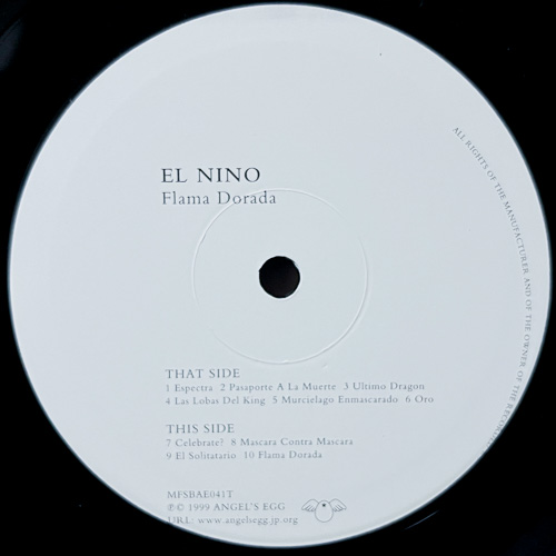 ハイブリッドな音響ジャズ・ロック/人力テクノ/ポストロックを展開させる野中太久磨・野中哲士の兄弟を中心としたフリーフォーム・ユニット=ULTRA LIVINGが覆面/別名義ユニットEL NINÕとしてANGEL’S EGGから1999年にリリースした全10曲入り10インチ。NAKED CITYやMASSACRE、MAGMAを彷彿させるようなプログレッシヴでアヴァンギャルドな轟音ジャズ・パンク。「CELEBRATE?」(試聴6)はなんと安室奈美恵「CAN YOU CEREBLATE?」のオマージュ…!