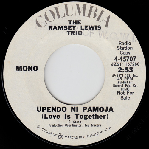 CLEVELAND EATONと、MORRIS JENNINGSを擁したトリオ編成。TOKYO NO.1 SOUL SET「隠せない明日を連れて」で鮮やかに引用された「UPENDO NI PAMOJA」の7インチ。US ORIGINAL盤!